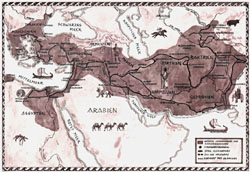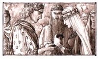 The illustrations consist of drawings of the chief characters, a selection of key-scenes from Alexander's life, as well as some historical artefacts, mostly from ancient Persia and Babylon. In addition I drew a large, foldable map showing Alexander's journeys. The drawings were executed in water-soluble ink. Below is a selection of the finished illustrations, with some preparatory sketches in pencil.