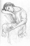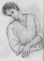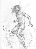 | Sketch for Voronwë to determine his pose. This is how he looks in the finished painting, entitled Tuor and Voronwë . The crab and the starfish reappear there as well. | |