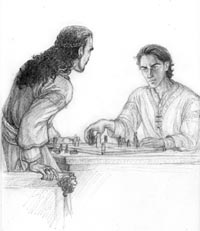 "Interrogation" (2007) Faramir and Khorazîr are interrogating an Umbarian prisoner who has interesting things to tell. From The Snake's Checkmate. |