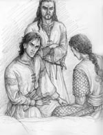 Sketches for The Snake's Checkmate (2007) Sketches of Faramir (with his son Elboron, Éomer, King Elessar and another of his babies respectively) and the Southron Corsair Azrubâr in scenes inspired by our Fanfiction-story The Snake's Checkmate. |