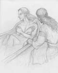 "Eowyn and the Grey Lady" "Testing the boundaries" "Changes" "Éowyn and the Snake" (all 2007) Since my co-author Lady of Rohan complained about me only drawing pictures of Faramir inspired by our fanfiction, here are a few sketches of Éowyn in various scenes from The Snake's Checkmate. The scene with bad guy Al-Jahmîr behind her is even creepier in the story.