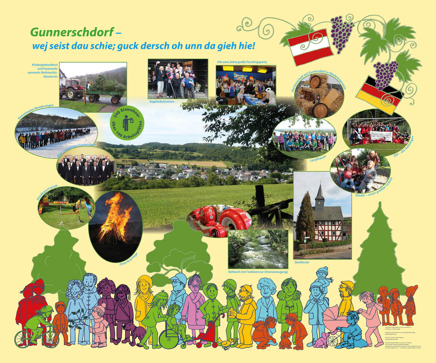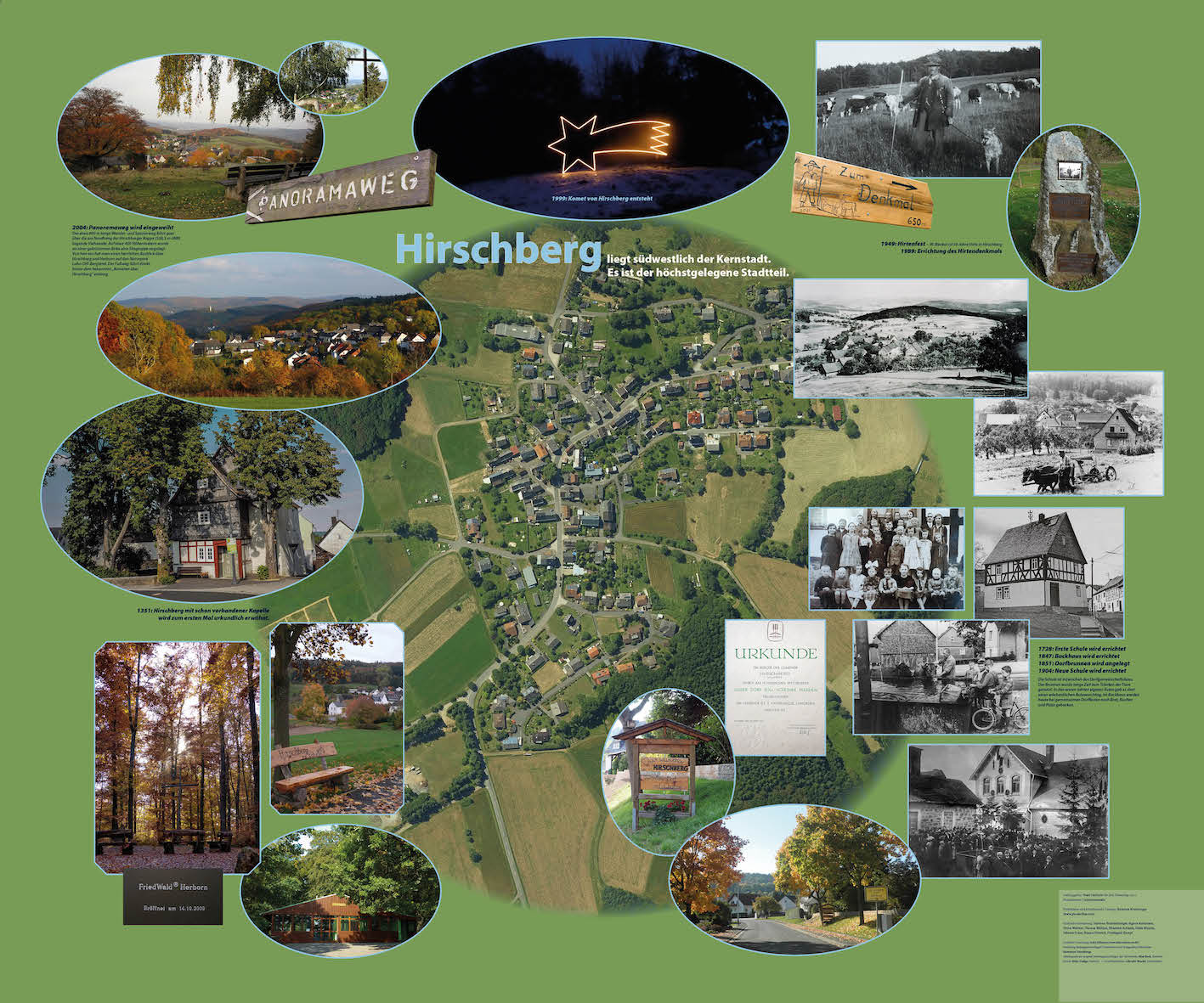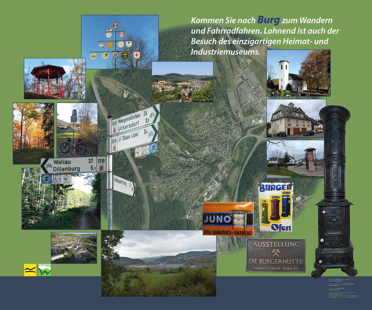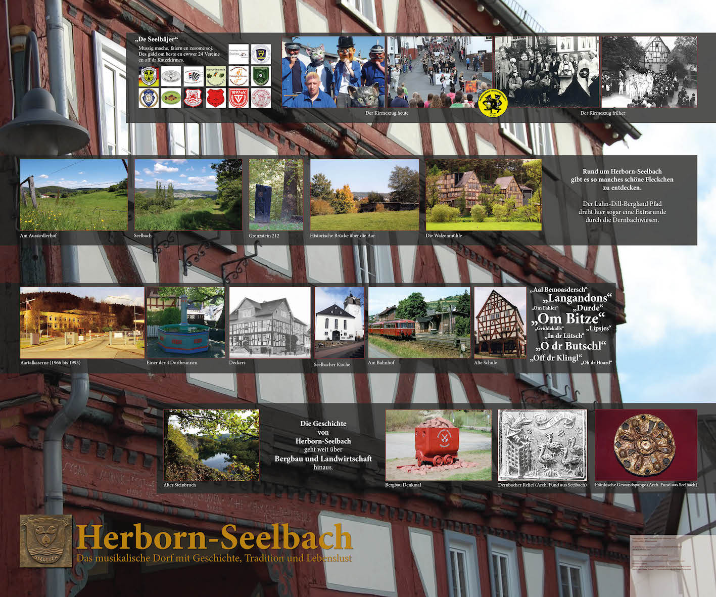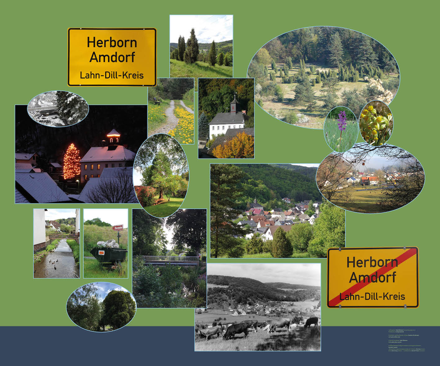 For the ten-day celebration of "Hessentag", which in 2016 is again happening in my hometown of Herborn, I collaborated with local artist Katarina Kronburger (picassolina) on the creation of ten lightboxes. Together with volunteers from Herborn's various districts and outlying villages, she created atmostpheric papercollages for the fronts of the lightboxes, while I was responsible for layouting informative backgrounds.