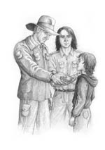 I painted the cover illustration (in two parts, actually) and drew 25 interior illustrations in pencil, a selection of which can be seen below.