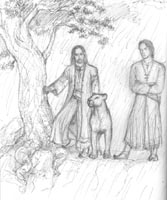 "Narejde" "Conversation with lioness" "Éowyn dressed for Consorts' Breakfast" "The meeting in the orchard" (all 2007) New artwork inspired by The Snake's Checkmate. Éowyn and Faramir have finally managed to meet again, if only for a short while.