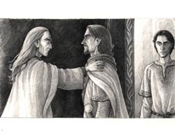 "Éomer cheering up Faramir" (2010) From The Snake's Checkmate. |