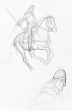 Sketches for "King's Steward". It took me some time and several drawings to decide on the right pose. |