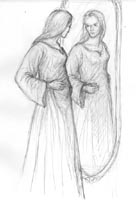 "Eowyn and the Grey Lady" "Testing the boundaries" "Changes" "Éowyn and the Snake" (all 2007) Since my co-author Lady of Rohan complained about me only drawing pictures of Faramir inspired by our fanfiction, here are a few sketches of Éowyn in various scenes from The Snake's Checkmate. The scene with bad guy Al-Jahmîr behind her is even creepier in the story.