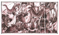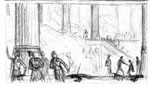 | Skizzen für die Plünderung und den Brand von Persepolis. Ich probierte verschiedene Perspektiven aus, bevor ich eine fand, die sowohl die Majestät als auch die Zerstörung der Stadt zeigte. | |
