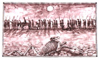 Heer durchquert die gedrosische Wüste, unter großen Entbehrungen.