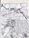 Colchester Cyclemap war eine Kollaboration zwischen dem Colchester Institute und dem Colchester Borough Council. Die Aufgabe bestand darin, eine neue Radwegekarte für die Stadt zu gestalten. Meine Herangehensweise bestand darin, zu den Wurzeln zurückzugehen: zur Ordnance Survey Karte, und von dort die Informationen, die ich als relevant für Radfahrer erachtete, zu erhalten. Dabei handelte es sich u.a. um wichtige Landmarken, Höhenlinien, besondere natürliche Landschaftsmerkmale und Orte von historischem Interesse, dazu Informationen über gefährliche Straßen und Kreuzungen, und natürlich die ausgewiesenen Radwege. Ein Teil dieser Recherche schlug sich in meinem Sketchbook nieder, das unten abgebildet ist, und schließlich auch auf der eigentlichen Karte, die viel vom Detailreichtum der OS-Karte beibehielt.
