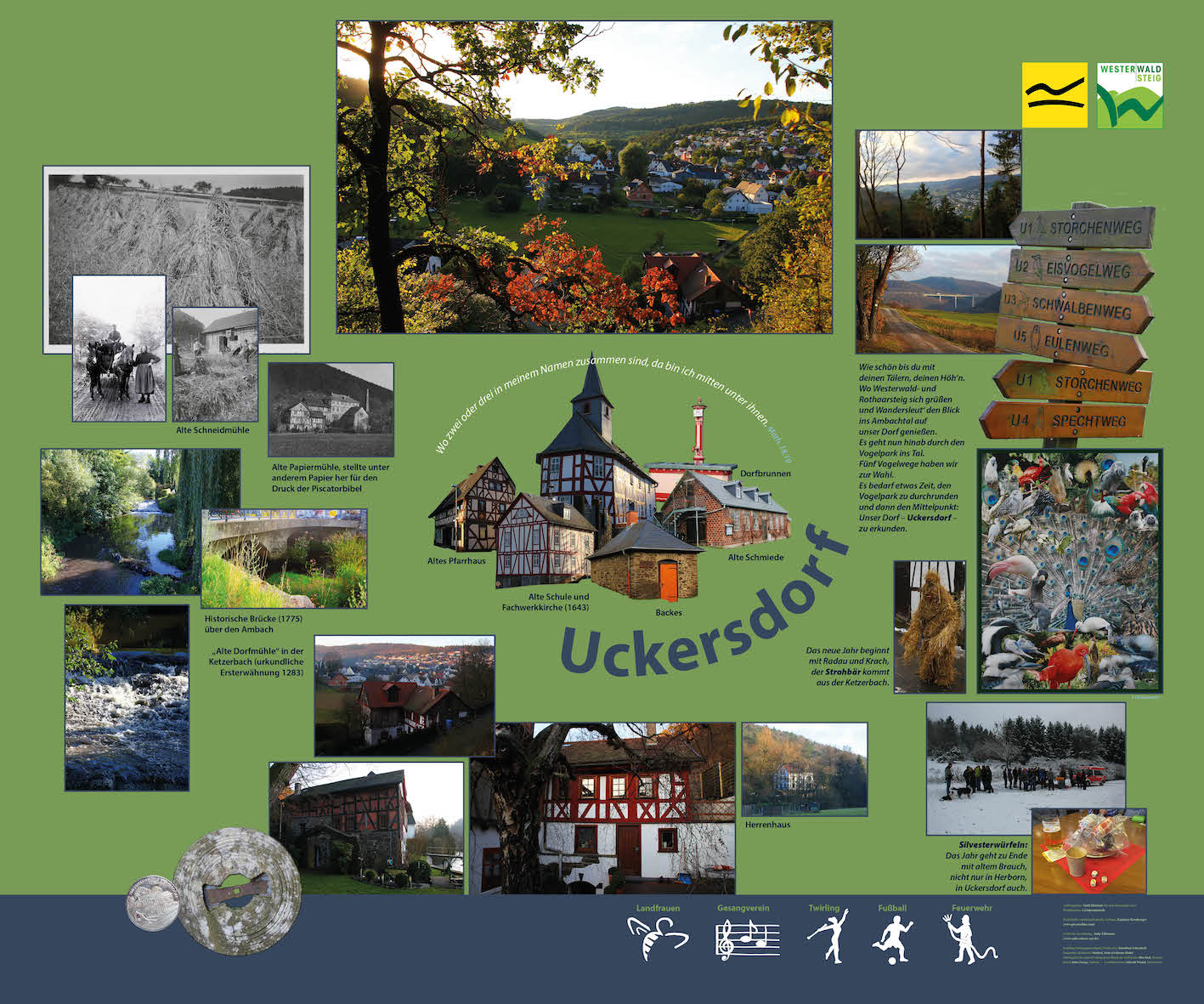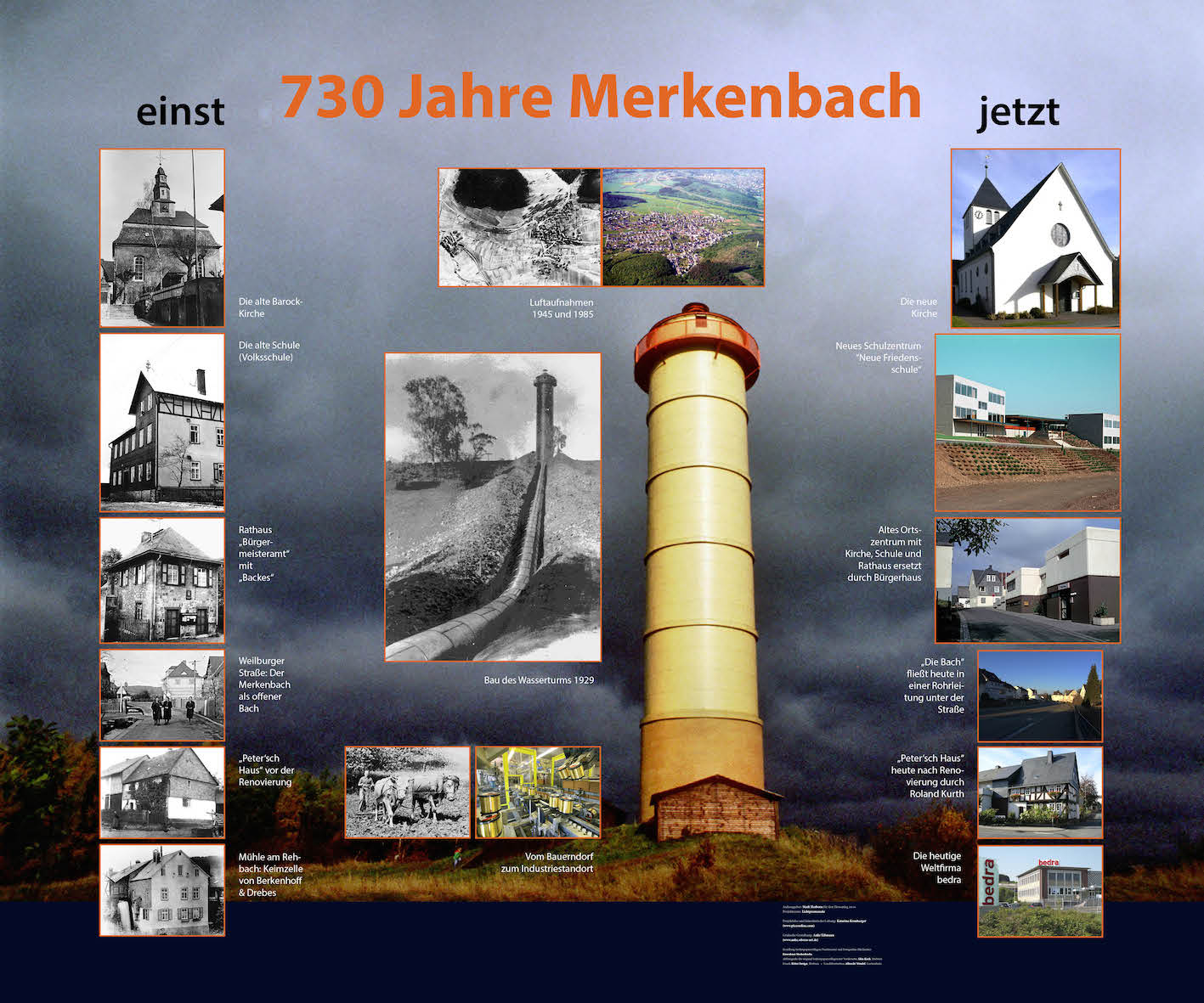 For the ten-day celebration of "Hessentag", which in 2016 is again happening in my hometown of Herborn, I collaborated with local artist Katarina Kronburger (picassolina) on the creation of ten lightboxes. Together with volunteers from Herborn's various districts and outlying villages, she created atmostpheric papercollages for the fronts of the lightboxes, while I was responsible for layouting informative backgrounds.